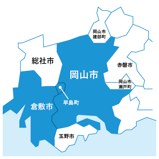 現岡山市内のうち、旧・建部町域、旧・瀬戸町域は範囲外となります。