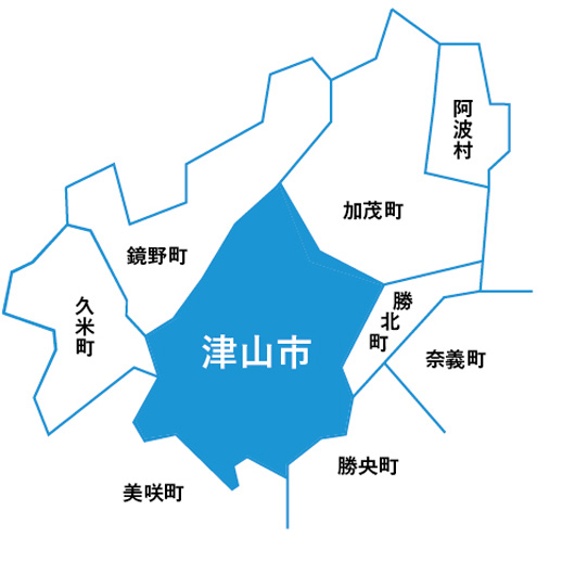 現津山市内のうち、旧・久米町域、旧・勝北町域、旧・加茂町域、旧・阿波村域は範囲外となります。